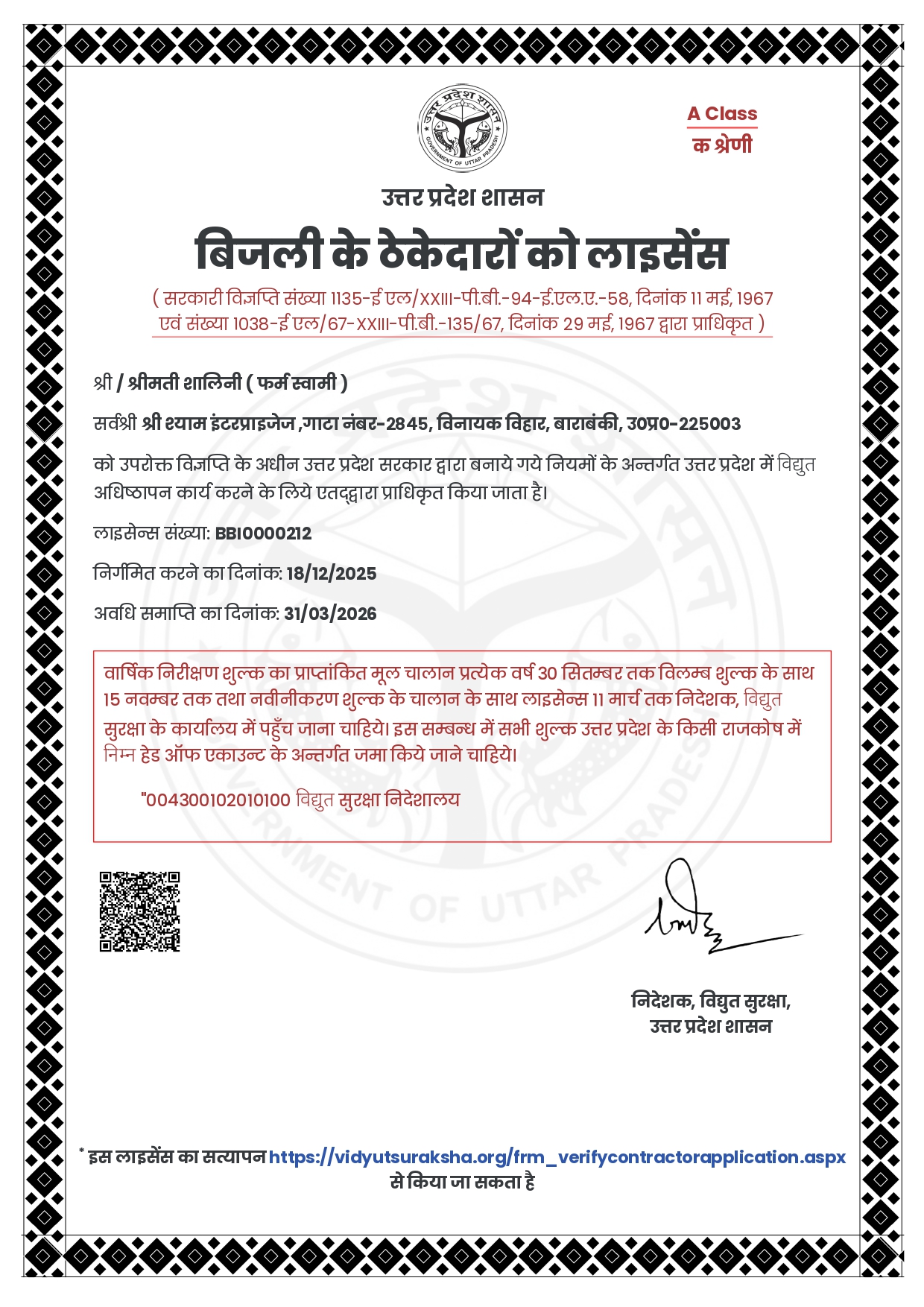 | ✓ | Account Holder | : SHRI SHYAM ENTERPRISES |