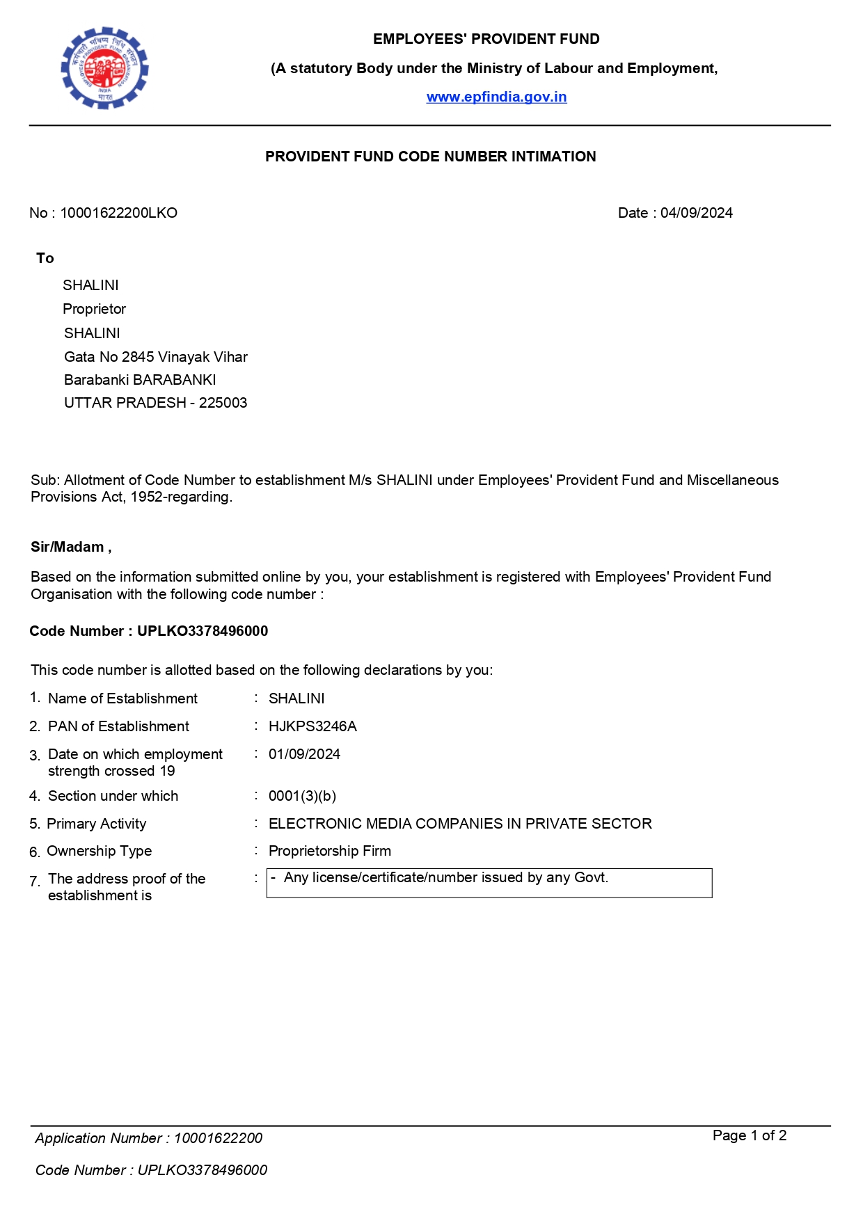 | ✓ | PAN No. | : HJKPS3246A |